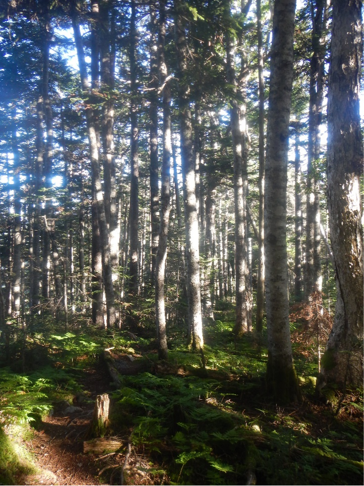 数週間前にトランスジャパンの選手たちも駆け抜けた仙塩尾根。日が高くなると、うっそうとした針葉樹の森にも陽が差し込んでくる。鞍部となる野呂川越からさらに急坂を下り両俣小屋に着いた。