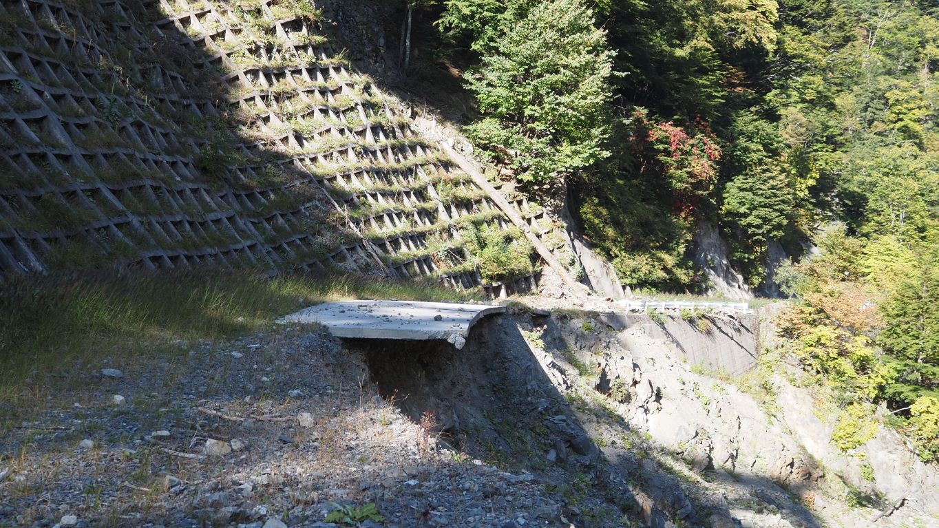 道路の最後2kmほどは損傷が激しく川原まで降りて迂回するところもあった。