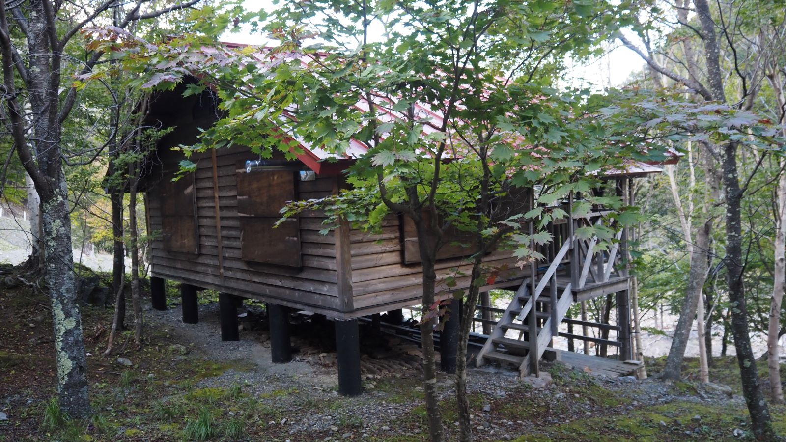道路の終点にある立派な小屋。小屋利用はできないがテラスの下でテント泊は可能。