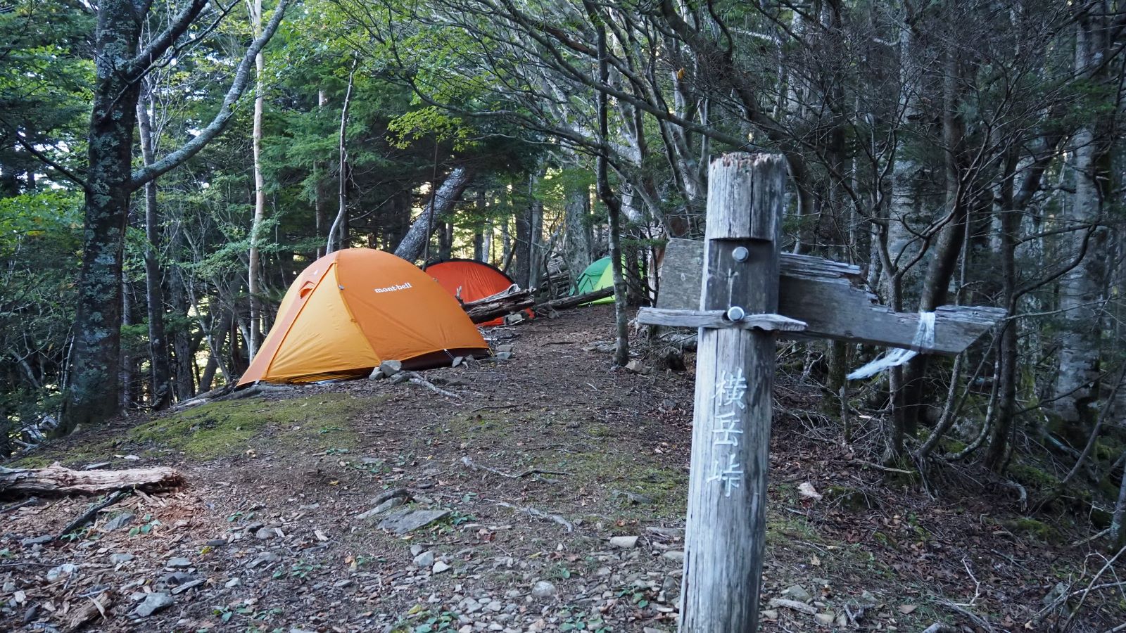 主稜線に出たところが横岳峠。ここに泊まれば鋸岳まで余裕で行けそう。ただし水場なし。