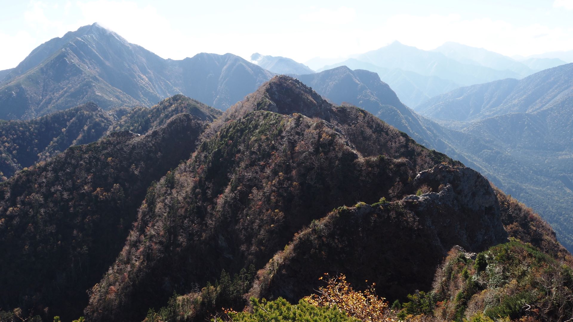 前日登った鋸岳が見える。前日と反対側から見ても岩山。
