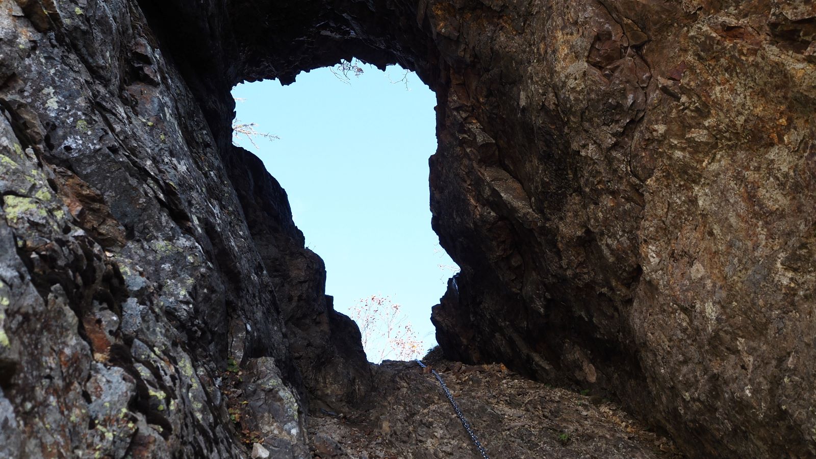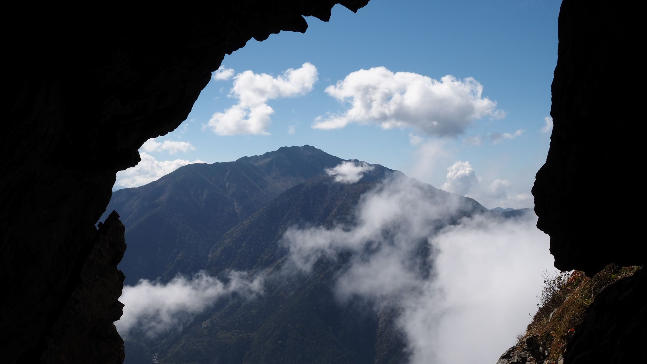 鹿窓は岩稜に空いた大きな穴。この穴は甲斐駒~鋸の縦走路のルートになっている。
