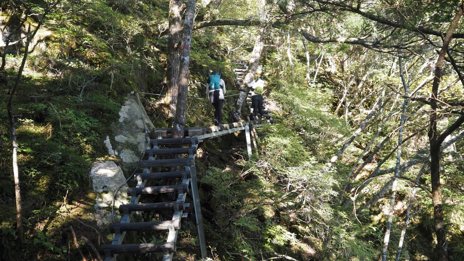 黒戸尾根はハシゴが多い。特に5合目屏風岩から七丈小屋までの間はハシゴ、クサリ、ロープのオンパレード。