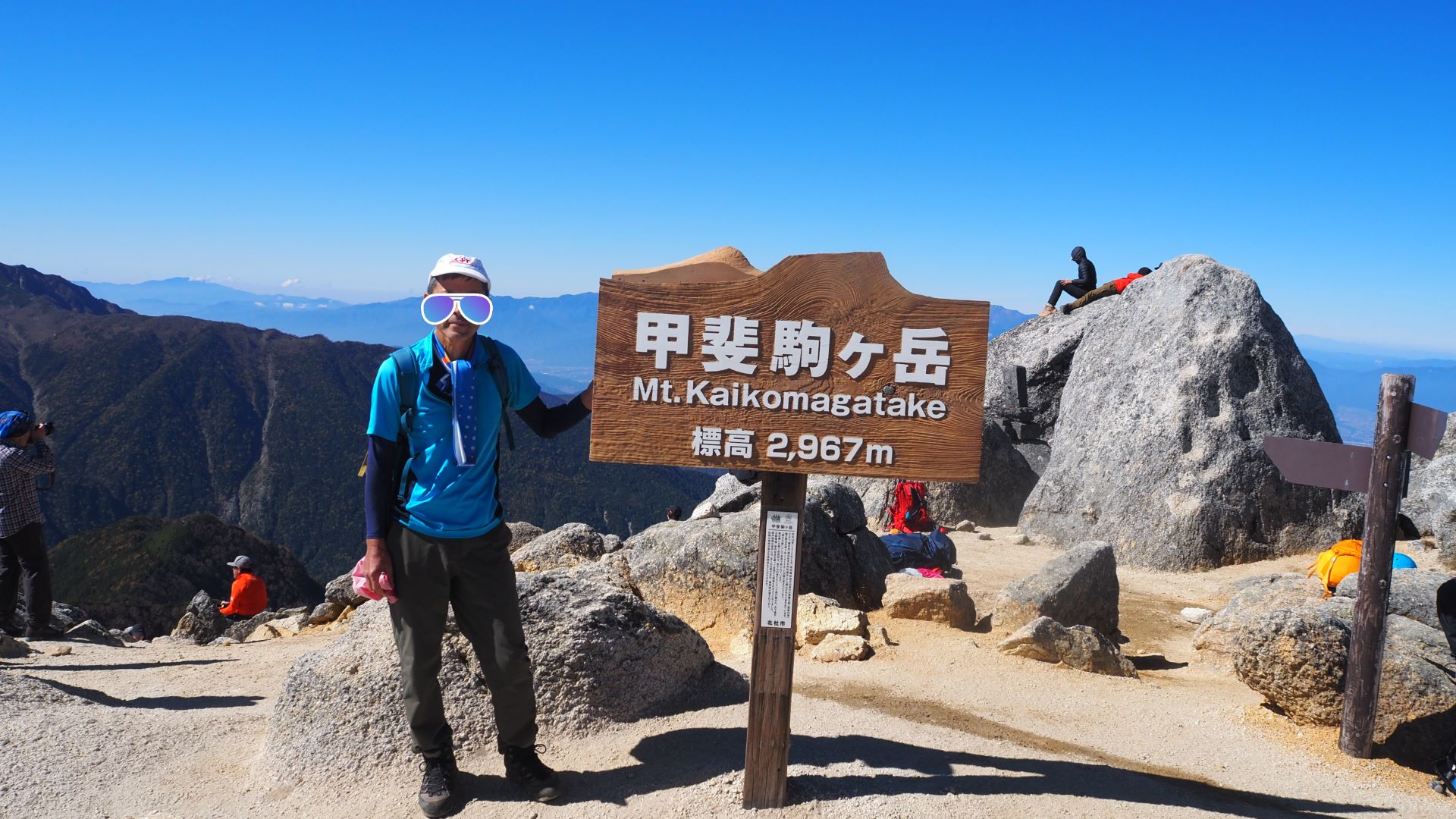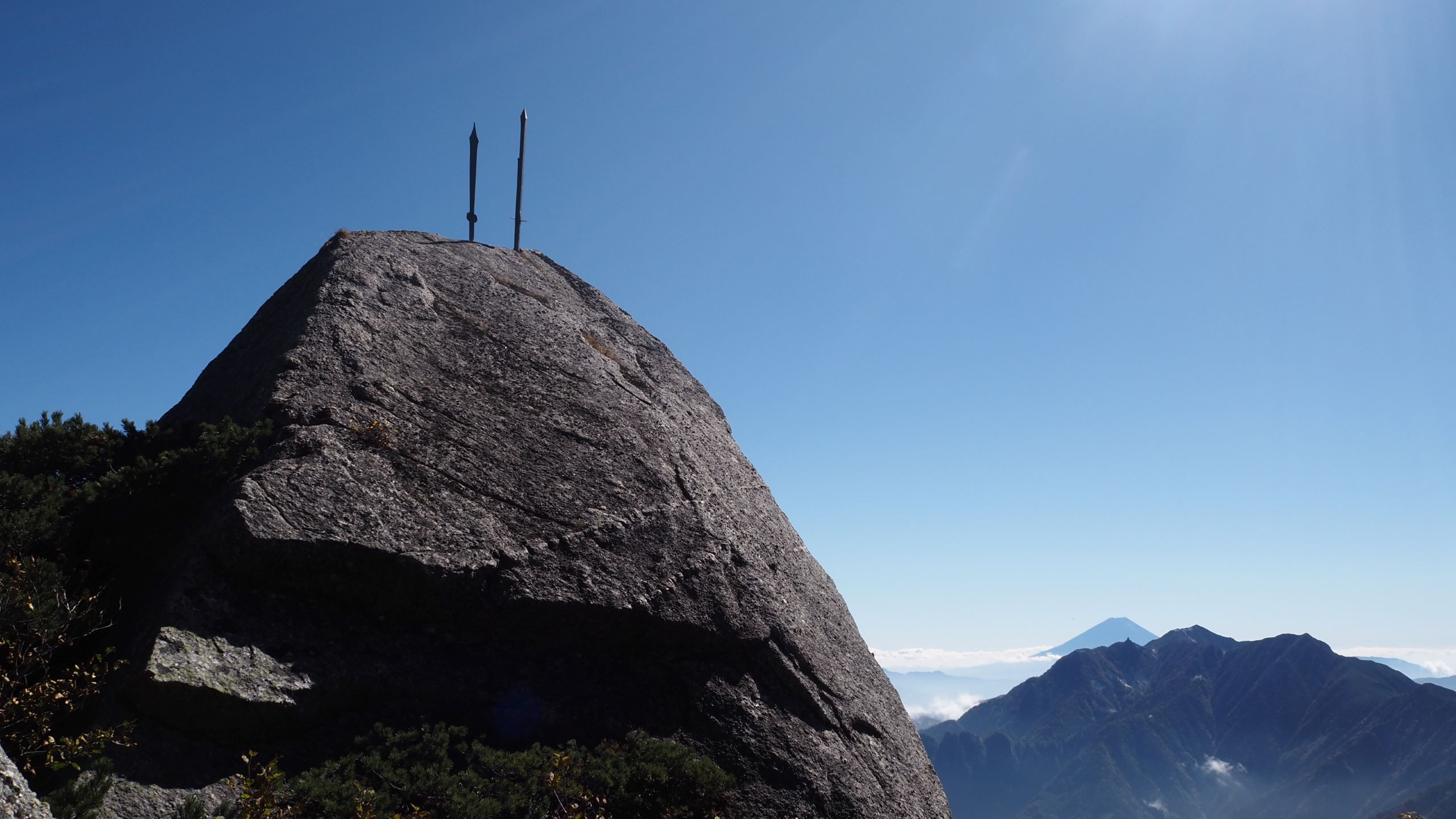 山頂から甲斐駒ヶ岳(左)と鋸岳第2高点(中央)