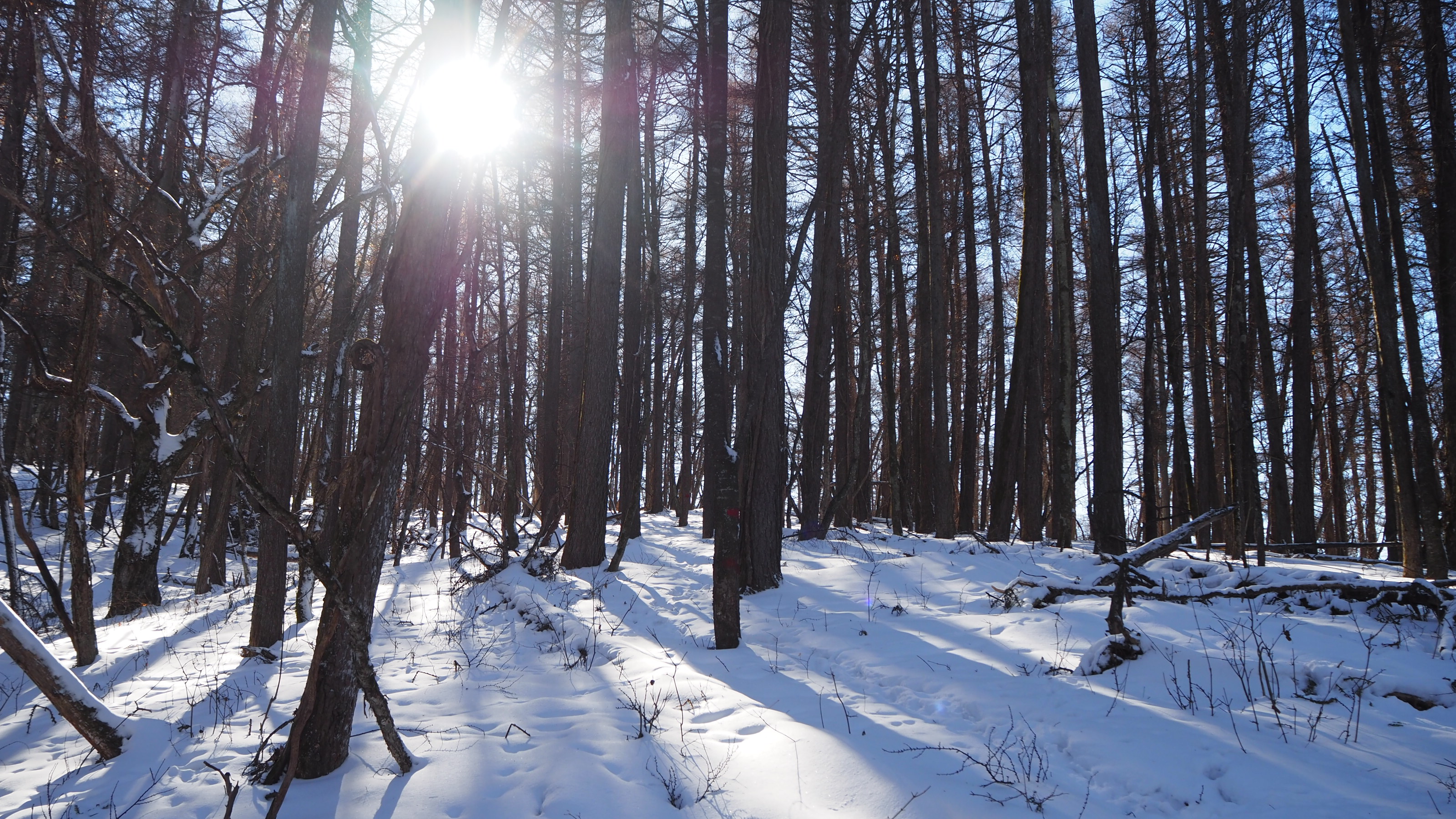 出張峠方向に下ると展望が開けて大沼が見えた。氷上のワカサギ釣りも見える。これでようやく赤城山に来たと実感できたので来た道を戻った。