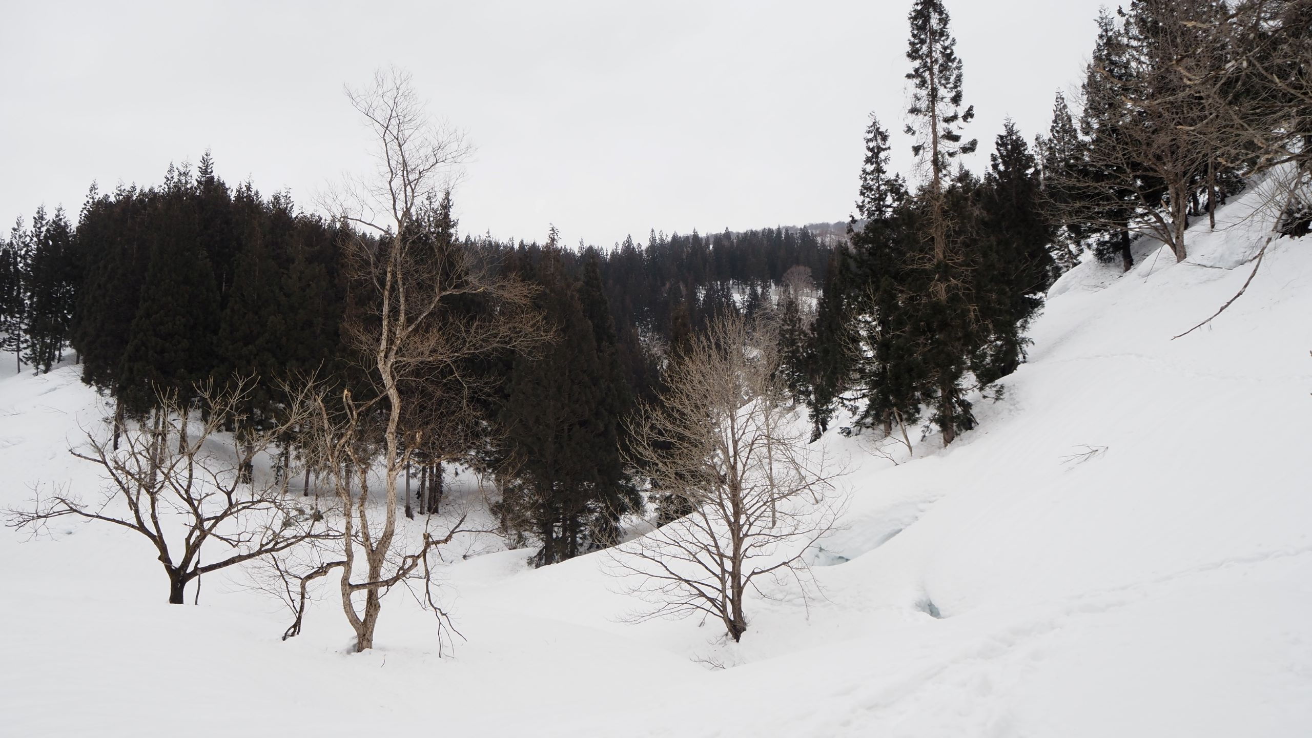 3月に入って雪も落ち着いてきたので山頂まで行けた。一週間前だったら深いラッセルで尾根に取付いてすぐにギブアップだったと思う。