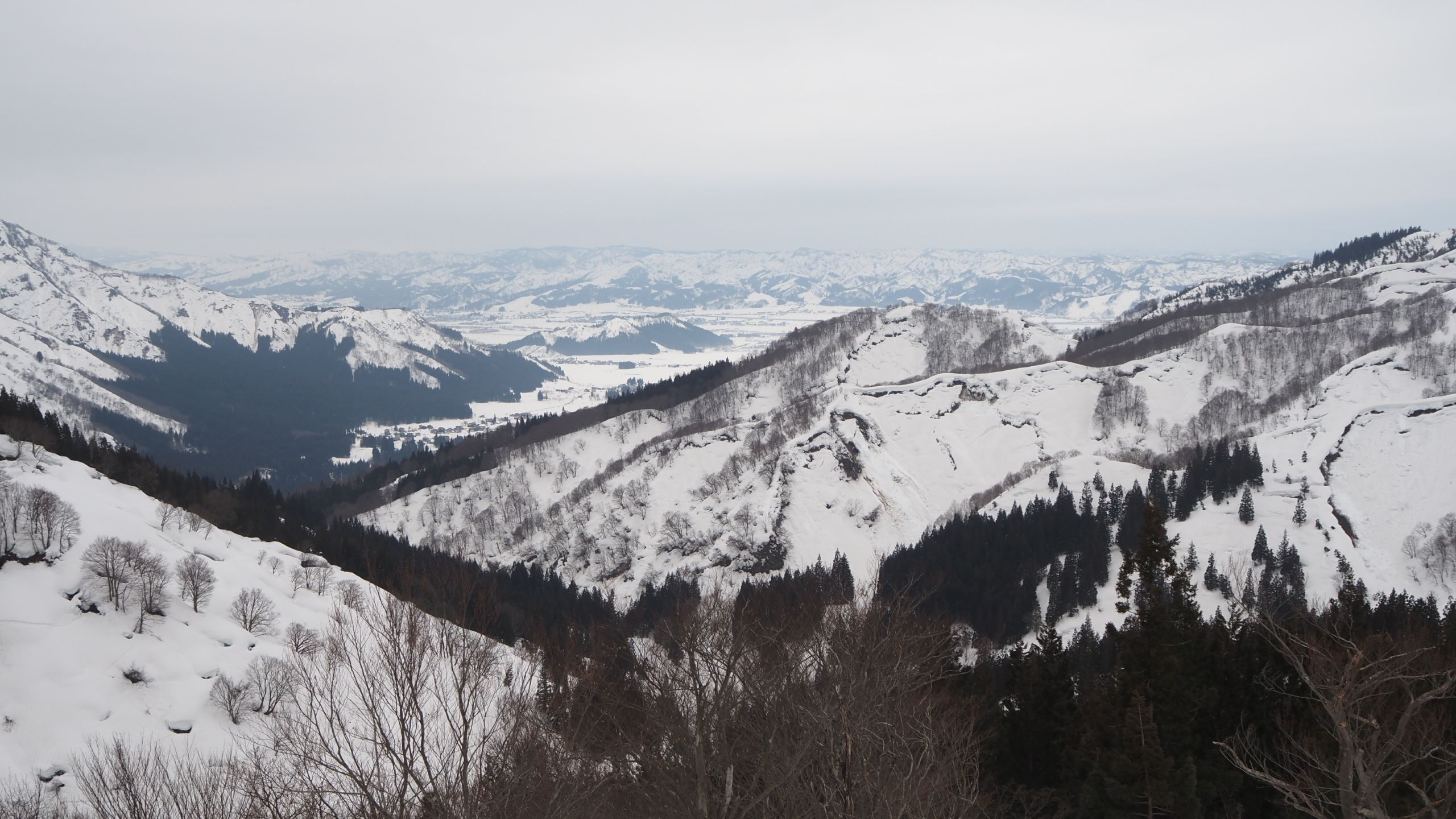 曇り空で一時小雨がパラつくも魚沼盆地方面の展望はまずまず。
