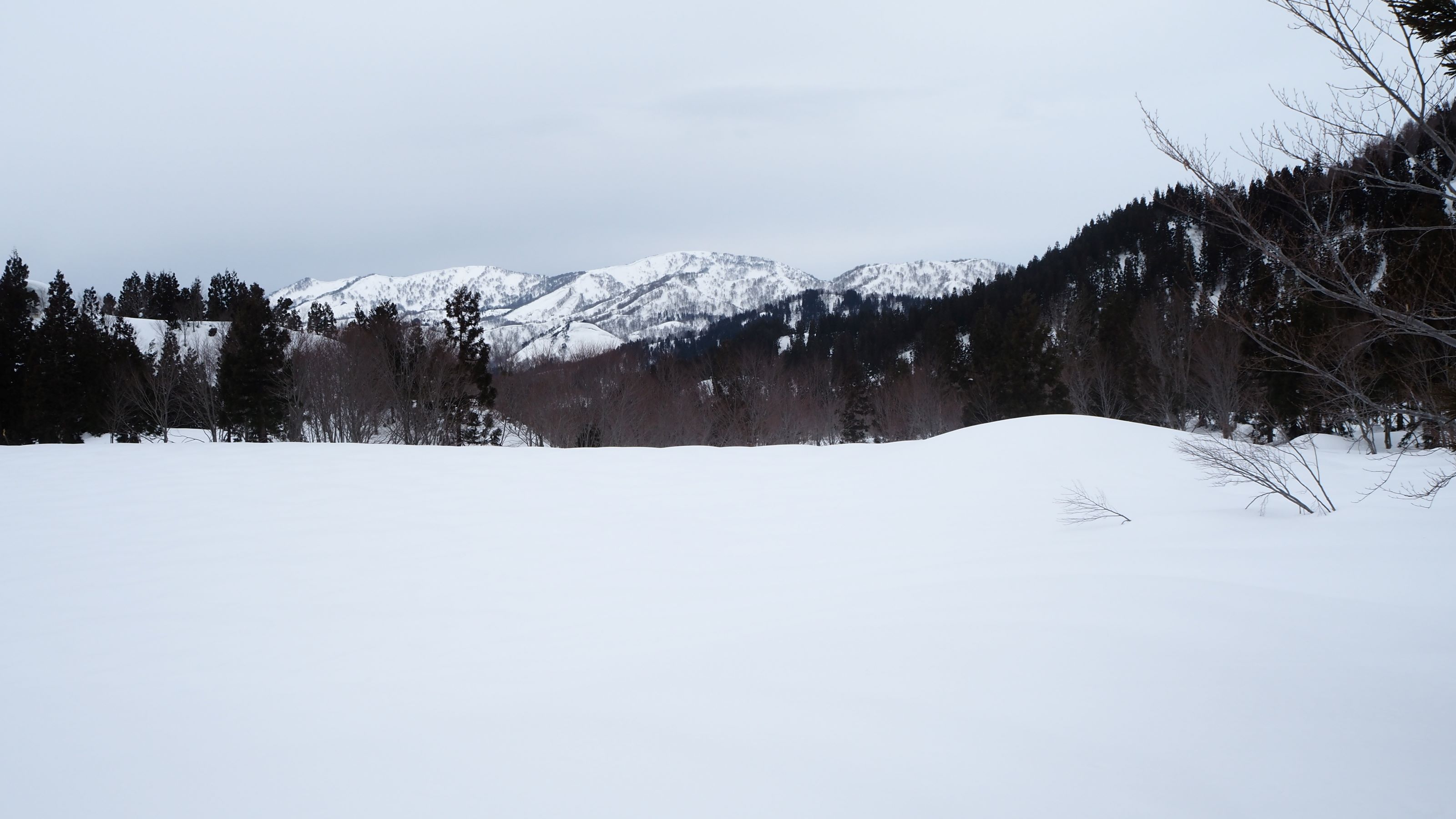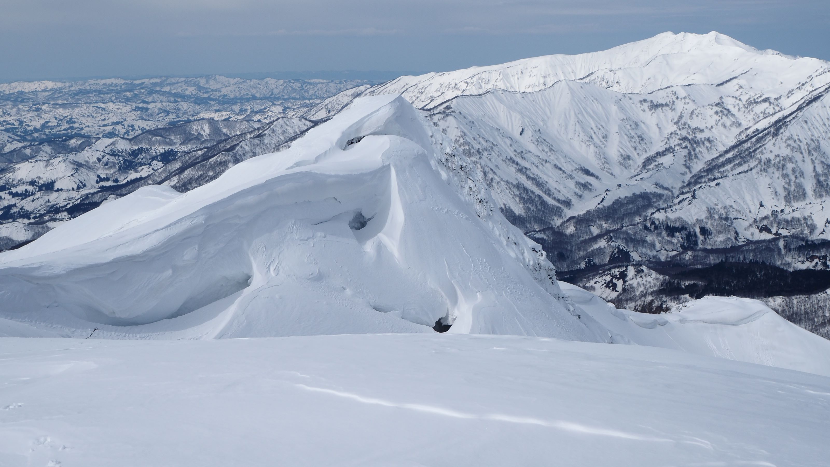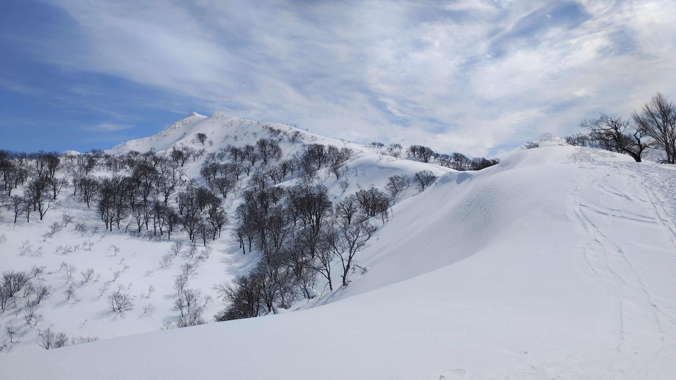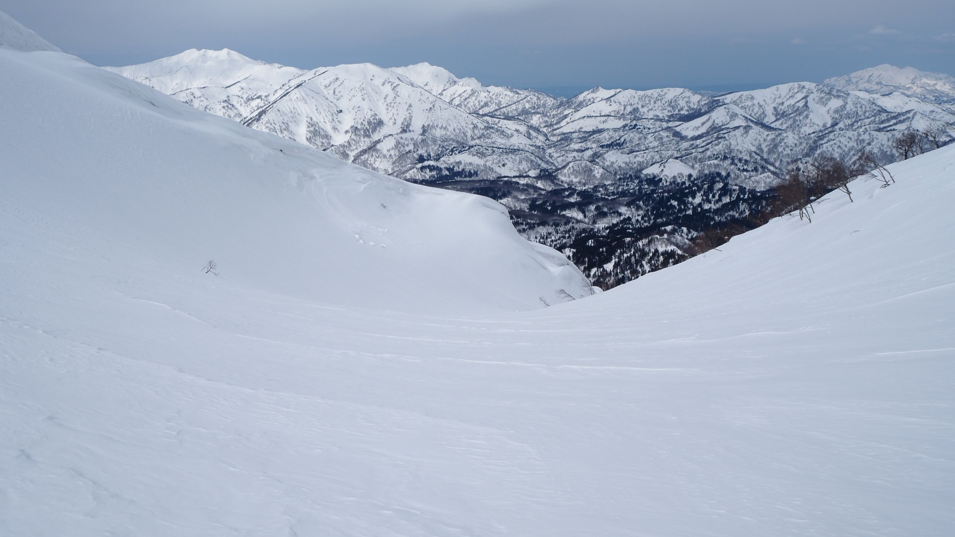 ヤジマナ沢左岸の尾根上に出る。このあたりの積雪量もかなり多そう。