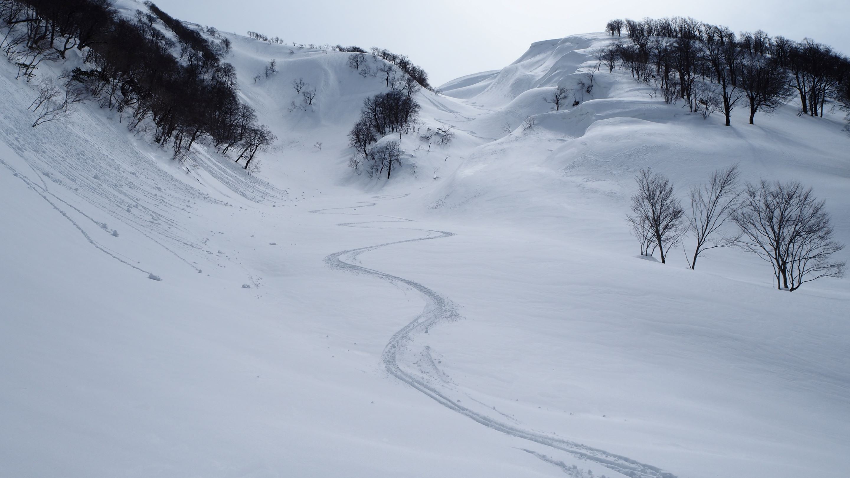 右側の本沢を降りてきた。デブリもなく快適。