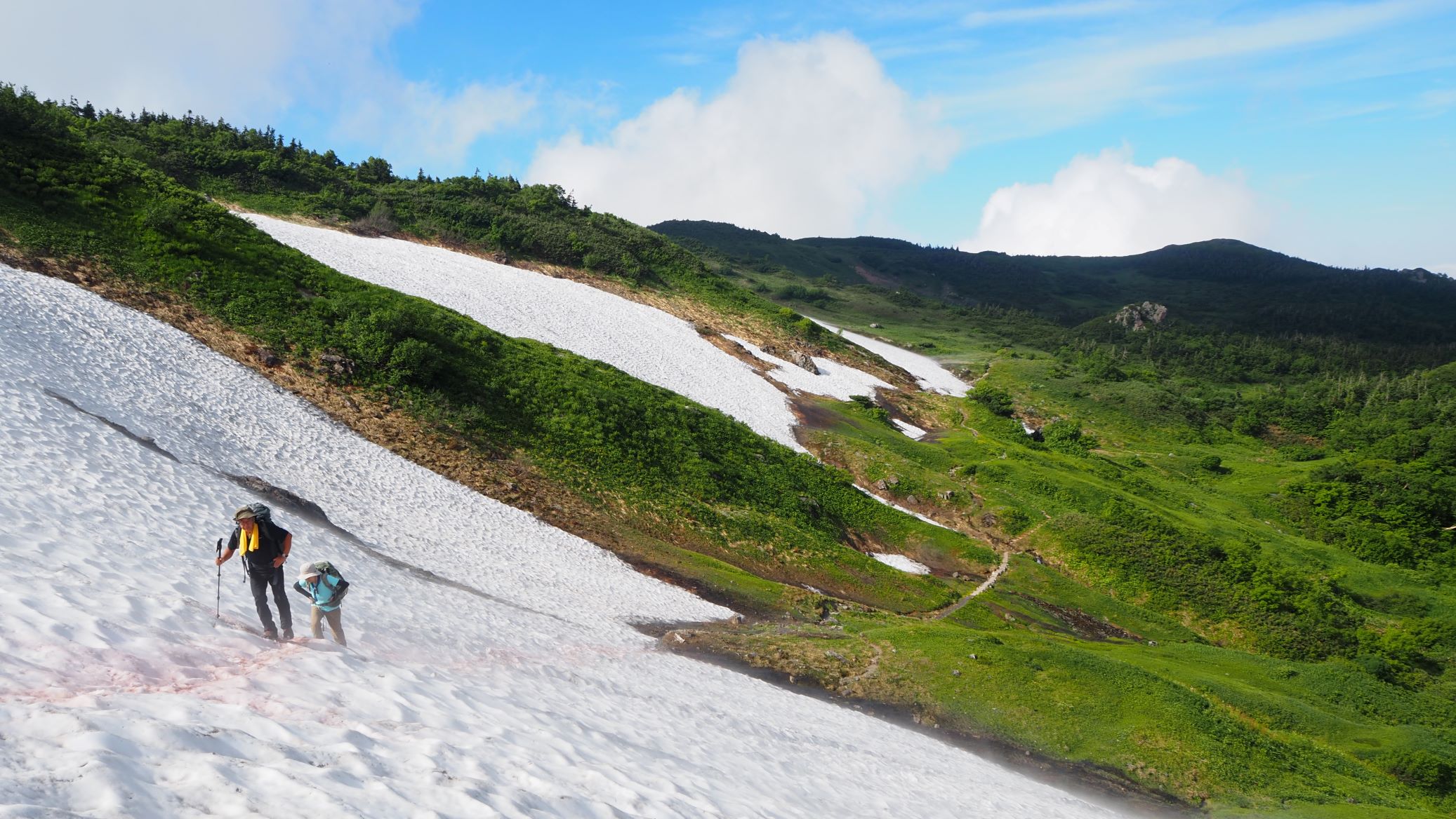 今回は同じメンバーでの再挑戦。朝日~雪倉~鉱山道周回コースの予定だったが、鉱山道が通行止めとなっていて朝日岳往復のみとなった。