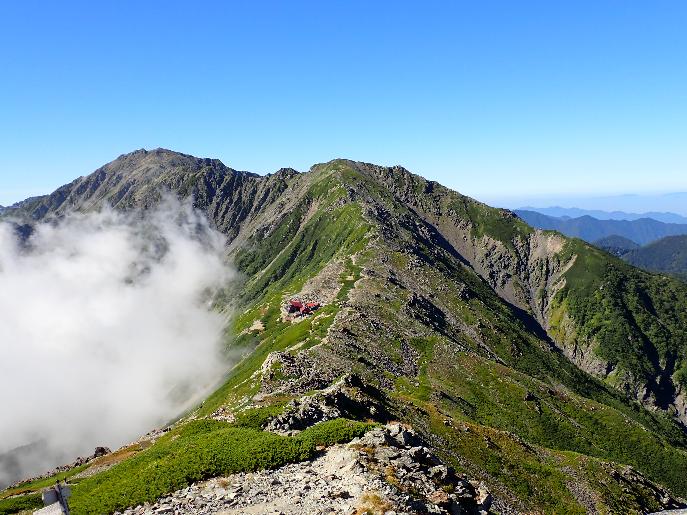 <9/1>晴れ 熊の平小屋3:20 - 三峰岳5:20 - 野呂川越7:50 - 両俣小屋8:25 - 北沢峠12:25