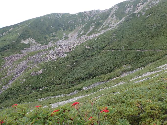 2日目は暗いうちに歩き出す。草スベリの急登は道がしっかりしているので歩きやすく感じる。