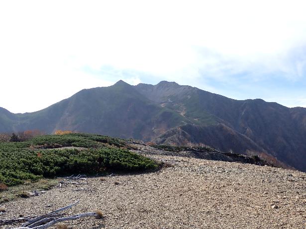 <10/12>曇り→晴れ 馬の背ヒュッテ6:00 - 仙丈ヶ岳7:30 - 仙丈小屋8:40