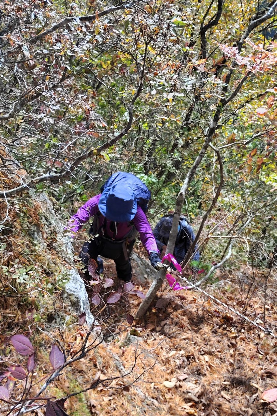下山は「鼻毛通しルート」。道標には「なだらかなルート」と書いてあるが・・