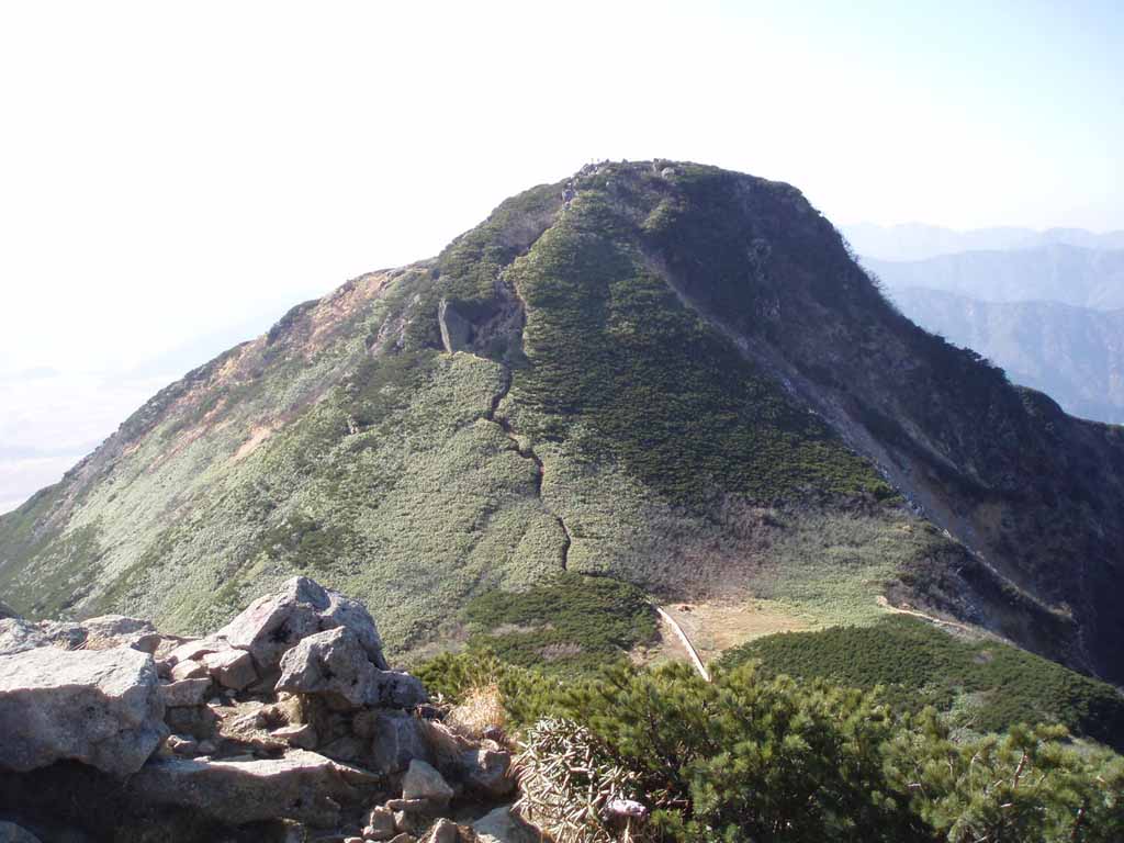 <下山にかかる> <ミノブチ岳から俎グラ>