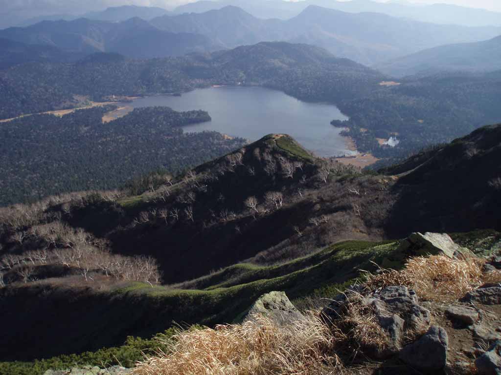 友人Oからの誘いもあり、尾瀬の燧ケ岳へ行くことにした。紀伊方面へ登山遠征に行っていた友人Fも加わって3名で出かける。朝5時、まだ暗い中OとFを迎えに行く。女池ICより磐越道の高速に乗って会津坂下ICに計算通り6時過ぎに降り、ETCの勤割引をきかせる。コンビニで買い物をすませ桧枝岐方面に向かうと紅葉の山や木々を見ながらの絶景の中のドライブとなった。御池に着くと、普段シャトルバス以外通行止めの沼山峠へのゲートが開いていて通れるようになっていた。ラッキーということで3人一致の意見で沼山峠からのコースとする。マイカーは通年規制と聞いていたが、オフシーズンはいいのかな?行き止まりの駐車場にも車は数える程しかない。支度をすませ、まずは尾瀬沼に向かって歩き出す。コメツガやシラビソの樹林帯をゆるやかに登りきると今度は下りになる。見晴台があり、大江湿原と尾瀬沼が見えてきた。小一時間程で尾瀬沼ほとりのビジターセンターや長蔵小屋のある場所に着く。ハイシーズンはすごい混みようなのだろうが、今日は天気がいいのに人影はまばらでなんだか得した気分だ。