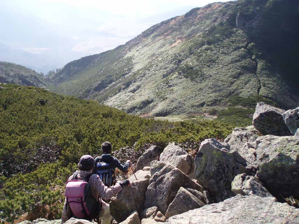 昼食を済ませ、名残惜しいが下山にかかる。下りは長英新道コースだ。
