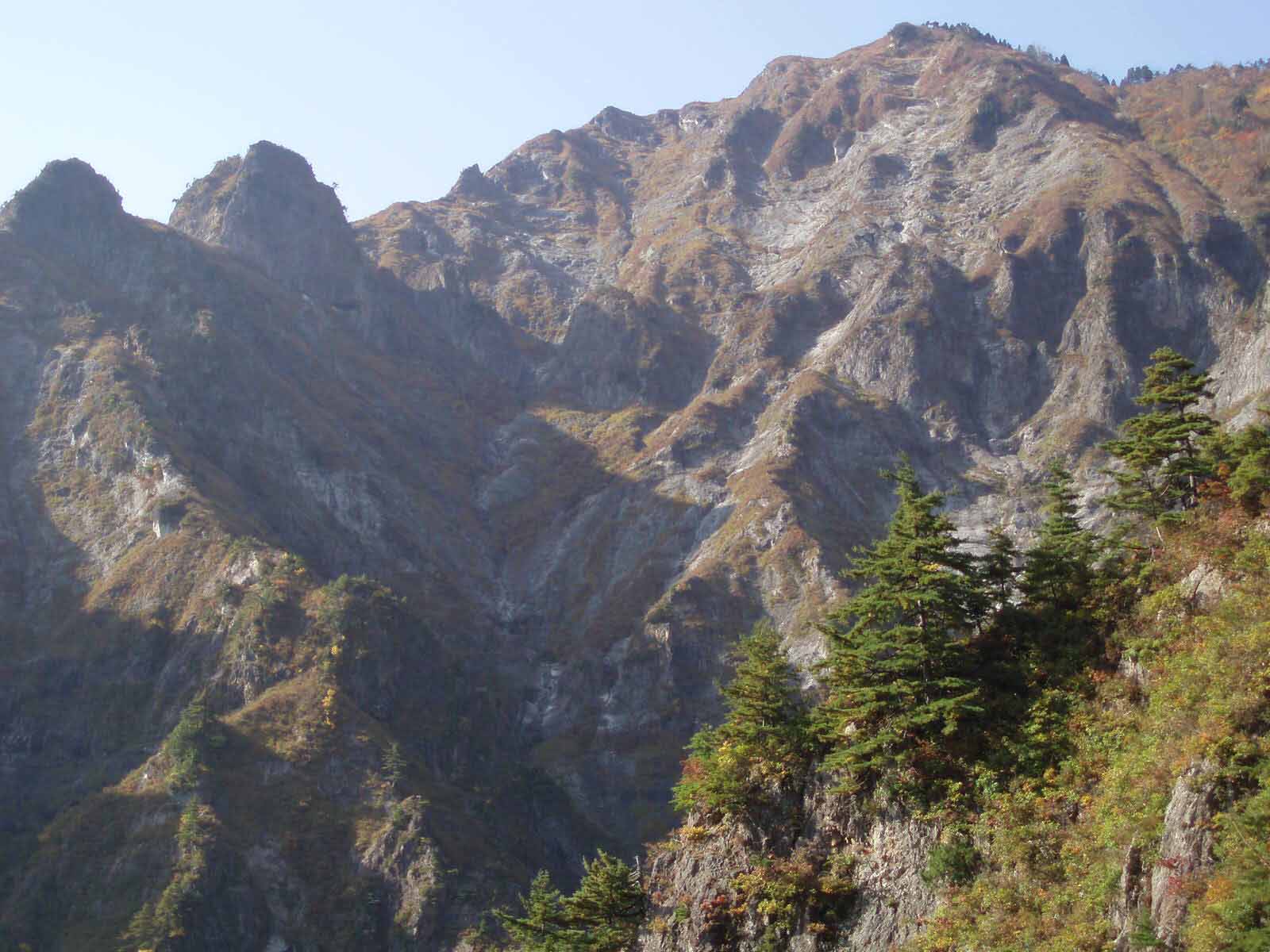 岩っぽい山に登りたくなり、御神楽岳へ単独で出かける。当初は御前ヶ遊窟を計画したが、季節的に日も短くなってきているので今の内に時間のかかる御神楽岳の蝉ケ平コースを登ってみることにした。御神楽岳は室谷口と会津側の霧来沢口からは登ったことはあるが、この山の真髄を味わうにはこのコース以外ないだろう。登山届を記入し広谷川沿い歩き始め、暫くすると遭難碑が3つ建っていた。昭和30年代から40年代に遭難した人らしい。追悼の歌が石碑に刻んであり、当時の親御さんの嘆きが偲ばれる。自然に手を合わせると共に、絶対に遭難はできないと決意を新たにする。小一時間ほど歩くと湯沢の出会いに到着する。御神楽岳の岩壁がまるで谷川岳のようだ。そこからは本格的な登りとなり、評判通りの岩場の連続する険しい登りとなる。登るにつれ次第に湯沢の頭をピークとする岩壁群の全境が見え始め飽きさせない。朝はひんやりと空気が冷たかったが、登るにつれ、10月末とは思えないほど日差しが強く、気温も上がってきた。だんだん苦しくなってきてペースも落ち、後ろから来た新潟市の男性にあっさり抜かれる。高頭を過ぎた頃からばてばてになり、“疲れた”とか“アヘ~”と独り言を言うようになっていた。それでも何とか湯沢の頭に到着し、そこから雄大な本峰を眺めながら休憩する。どうも体力が落ちたようだ。昨日の結婚披露宴の出席時に飲みすぎたことが原因か?いや、やはり以前より明らかに気力、体力共に落ちていると思う今日この頃だ。いよいよ本峰の登りにかかる。一旦下り、登り返す、途中山頂から偵察に来た福島の男性と会い、こっちは大変かい?などと聞かれる。どのコースも楽とは言えないだろうが一応大変と答え、是非一度はどうぞと案内した後、最後の登りにかかる。稜線分岐にくるとあとは僅かだ。山頂に着くと人が大勢いて、落ち着いて座れる場所もなさそうだったので、少し降りてから休もうとすぐに下山にかかった。湯沢の頭の手前のピークで休憩を取る。この尾根は見晴らしが良く景観も素晴らしい。秋の陽だまりの中で気持ちの良いひと時を過ごした。下山はさすがに慎重にならざるを得ないところが多く、登りと同じ位の時間を費やす。難所ではあるが高頭と湯沢出合間がこのコースのハイライトと言っていいだろう。標高はそう高いわけではないがこの景観はなかなかお目にかかれないと思う。