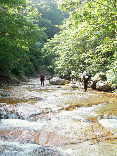吾妻連峰に美しい沢があり、グレードもそれほど高くないらしい…自分たちだけで行けるのでは?!と、計画してみた。岩、沢登りから離れて大分経つ。昨年あたりから沢登りをしてみようでは!!という声が出て米子沢に行き、今年も今回の遡行となった。インターネットで情報を集めたり、遡行図を求めたり、自分なりに研究してからの山行だった。
