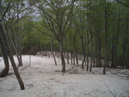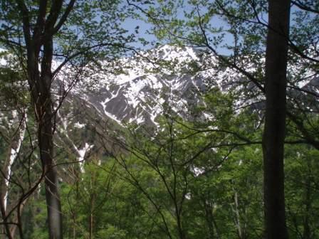 <美しい残雪のブナ林>