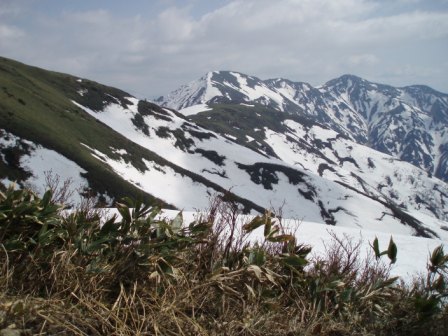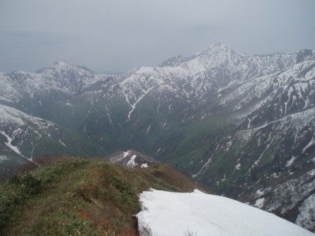 当初は2日目を早立ちし、下津川山まで縦走し、一気に下山してしまおうと思っていたが、やはり今の体力、残雪の少ない状況などから無理だと思い知らされることになる。