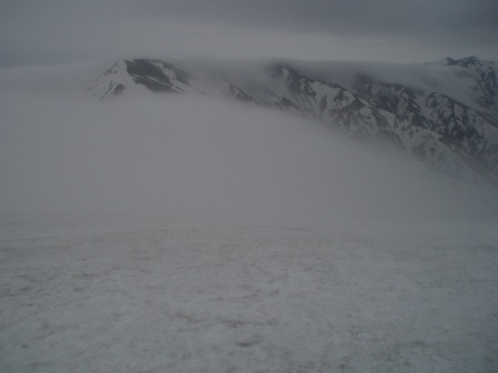 小屋に着くと先着の人が2〜3人しかいなく、十分余裕がある。天気も良かったのでしばらく外でくつろぐこととした。Gさんがみんなの空ペットボトルを集め、水を汲みに行ってくれた。ほんとにすまない。いつもお世話になりっぱなしだ。小屋に入り、日本酒や焼酎などを飲み始めるといつの間にか意識がなくなって眠りに入ってしまった。夜中目を覚ますと風が強く、戸を開けるとガスで何も見えない。今日これからの天候が気になった。