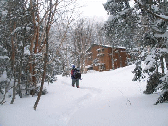 なんとか明るいうちに燕頭山に着く。積雪は4、50cmほど、ザックの温度計は−10度をさしていた。気温が上がらないので、雪は降ると解けないのだろう。指先も冷たく感じる。樹林帯の中の山頂だが、笹原が広がっているので、テントを張る所には困らなかった。風の当たらないような場所を見つけ幕営。テントに入るとすぐにランタンが必要となった。大晦日の夜は風が強く、一晩中木のきしむ音を聞いていた。