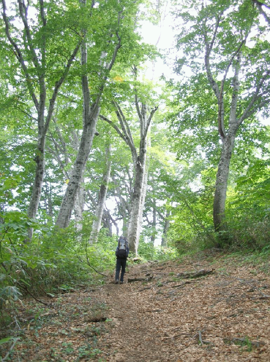 天気は晴れ。今日一日は良さそうだ。最初はブナ林の緩やかな道を行く。紅葉には早いが、見事なブナ林が続く。大倉、タッチラ坂、屏風岩と程よいペースで休憩場所があり、ゆっくりと遊びながら歩く。登山道も整備され歩きやすい。