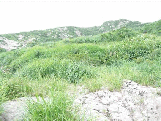 山頂直下の登山道に向かってルートを左に取りながら行く。スラブを横切ったり、草付の中に入ったり、登りやすそうなところを選ぶが、沢で疲れた体に急斜面の登りはきつかった…この思いは私だけのようだったが……。やっとの思いで登山道に着いた時は疲労困憊状態だった。