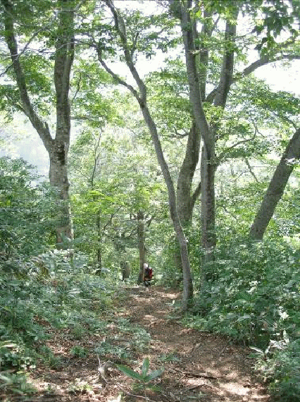 <ブナ林の登山道>