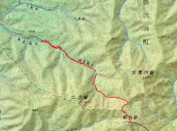 稜線分岐10:05~ガレ沢合流場所11:25~林道駐車地点12:35~林道車駐車地点発13:20~新潟(自宅)着19:45