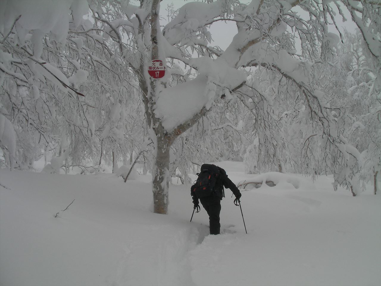 トレースは大岳周遊ルートの標識に忠実につけられている.