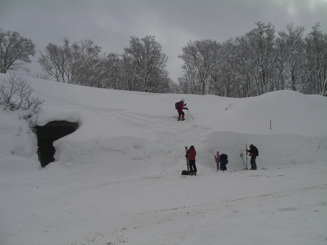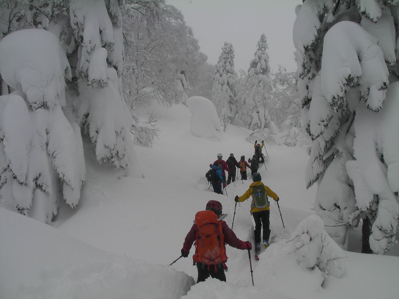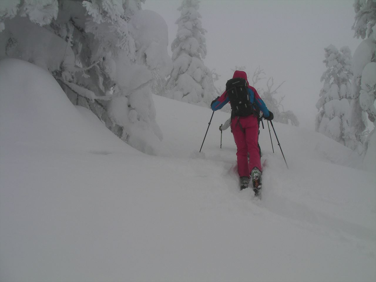 我々はアオモリトドマツのツリーホールにはまらないように,慎重に滑らなければならない.