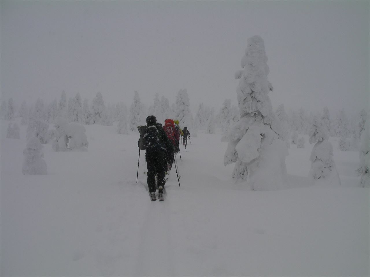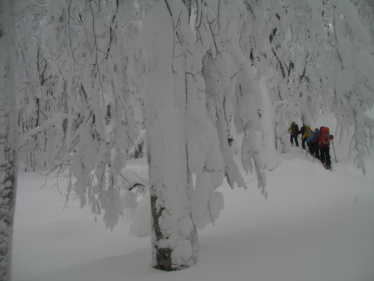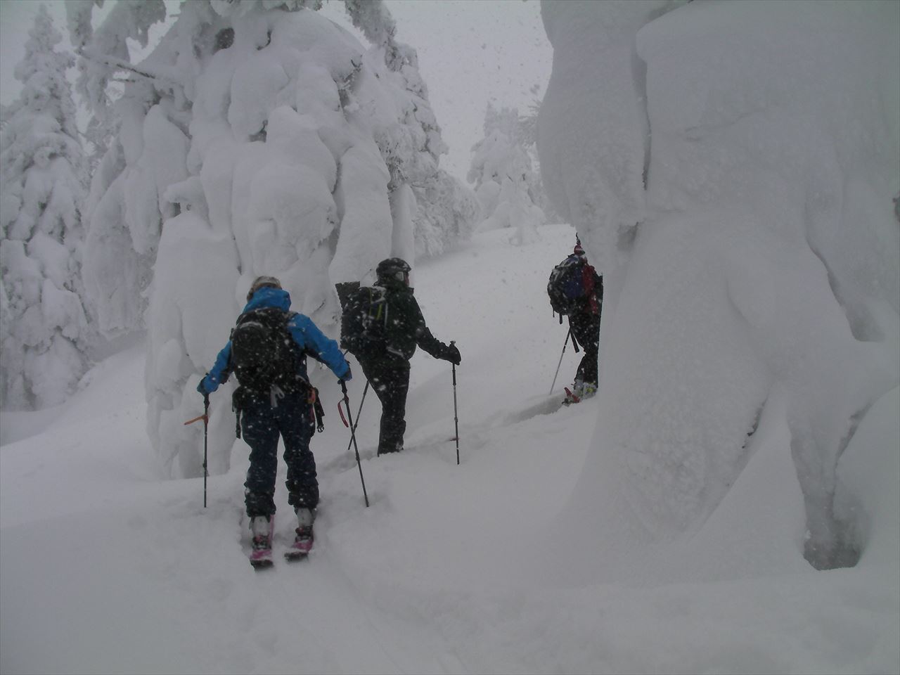 標高1100m付近からは,アオモリトドマツの樹氷帯となる.