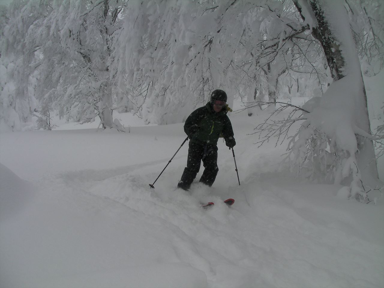 雪も軽く,斜度が緩くても楽しく滑られる.