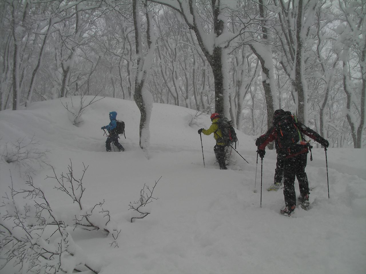 引き継いだD隊員,Y隊員が続けてラッセルする.