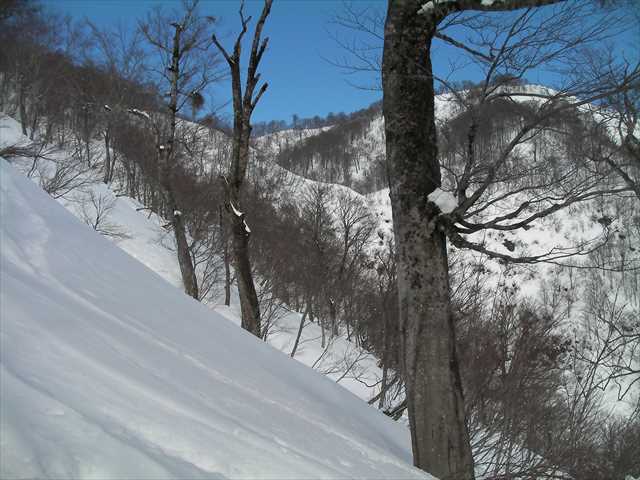 我々はタモ沢源頭のいつものブナのところで休憩する.