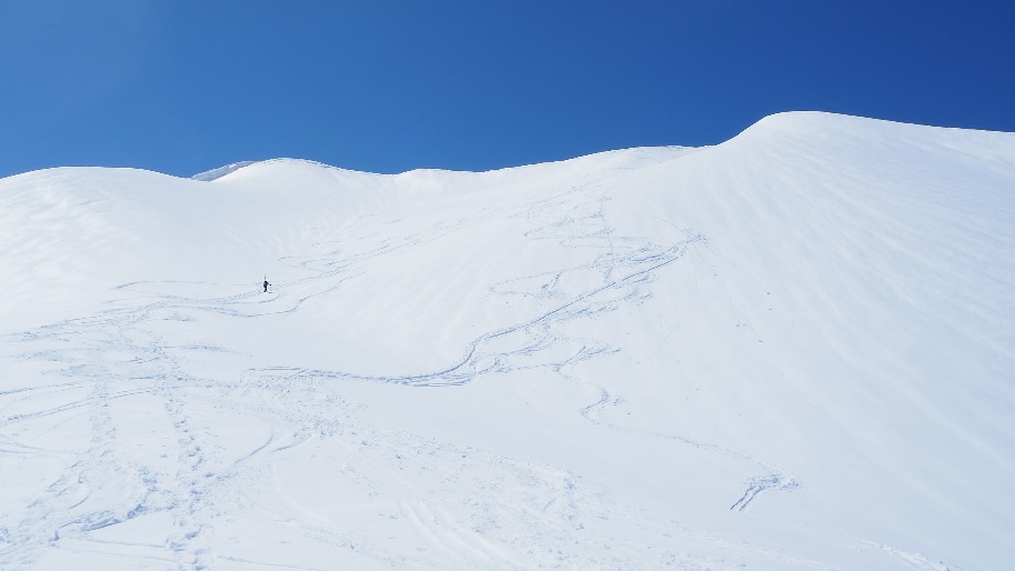 スキーにとっては快適な雪に程遠かったが、ロケーションを楽しみながら下る。