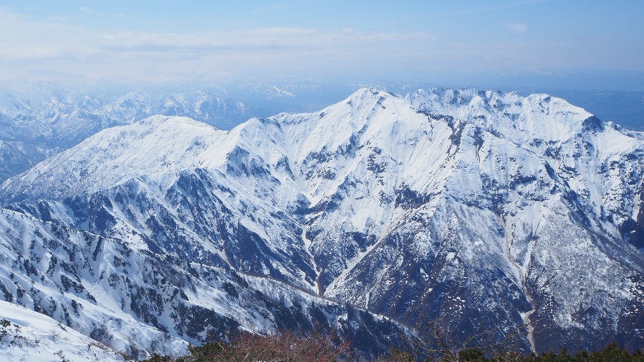 《山頂から↑中ノ岳、御月山↑、 グシガハナ↑ 》