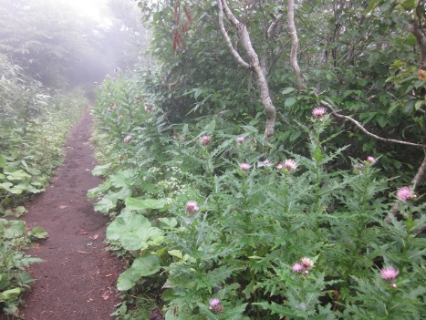 その後、男女岳~男岳へ。男岳から?ムーミン谷へは急な下り藪草で足場が悪く大変でした。
