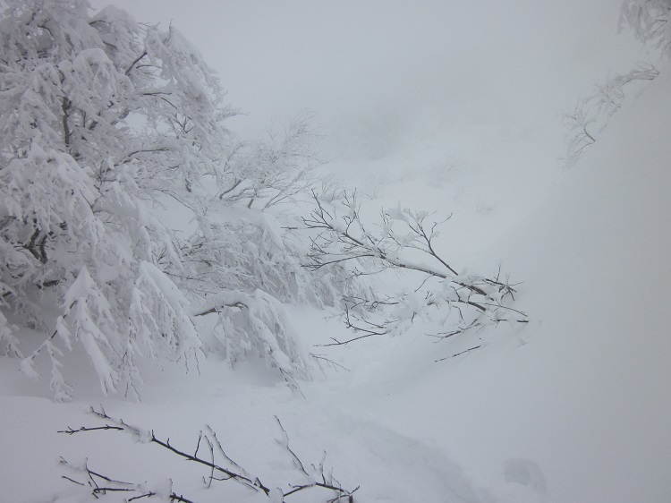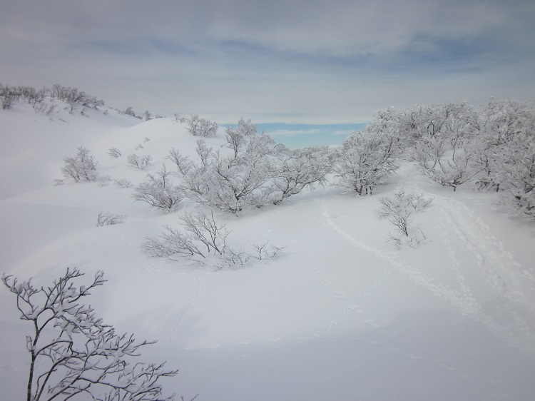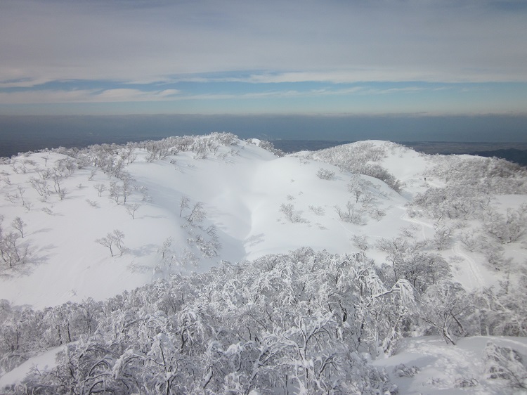 定高山からトレースが着いてなかったが、先頭にいった方々(10人位)のお陰で楽に進むことが出来た。