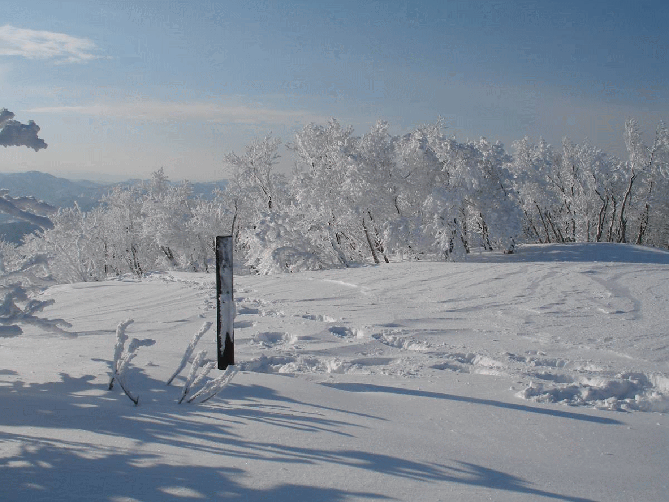 <1/11>晴れ→ガス時々曇り 新潟7:30 = 石間登山口9:03 − 尾根9:31 − 尾根分岐10:26〜10:48 − 宝珠山10:57 − 大蛇山13:09〜13:28 − 野須張(テン場)14:32