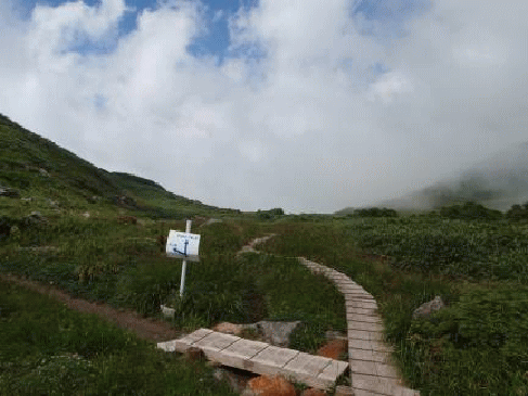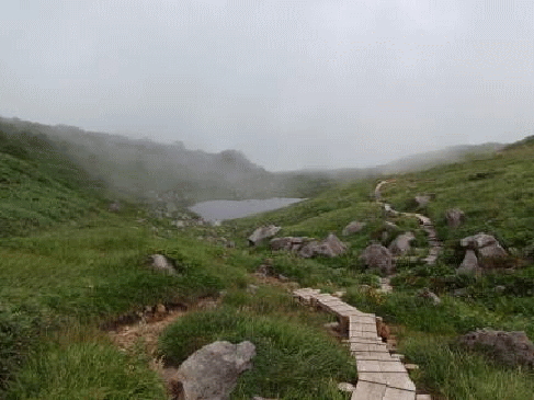 人気のある鳥海山のメーンルートから一歩外れただけで訪れる静寂感。広がる湿原の木道をひとり歩き、着いた山頂も自分だけ。今回は展望が利かず残念だったが、目の前に鳥海山がそびえ立つロケーションも独り占めできる。すごく贅沢な山を満喫できるに違いない。鳥海山を横目に、あえて登った月山森。なぜか落ち着け、好きな山となった。また季節を変えて登ってみたい…少し遠い、かな。