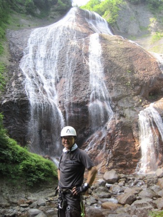 参加はA会長とGさんでGさんは天元台から上がり西吾妻から東大顛まで縦走して下山中の渡渉地点で合流することとした。大滝沢はA会長と二人で入渓する。美しい沢だが一度入っているので、新鮮な驚きはない。120mの落差といわれる大滝に着いた。相変わらず大滝の迫力は凄く、個人的には日本の滝では3本の指に入るのではないかと思う。