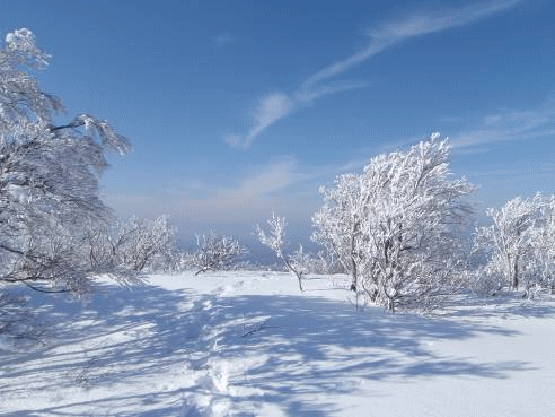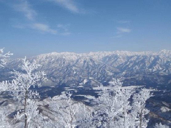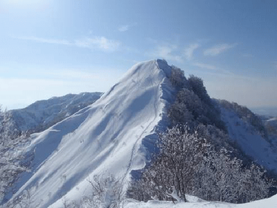 金鉢山に向かう。縁には仲間のトレースがはっきりと付いている。急だが、雪が柔らかくトレースがしっかりしているので怖くはない。クラストしている残雪期より深雪の厳冬期のほうが、天気など条件にさえ恵まれれば、楽に登れるのかもしれない。金鉢山山頂からは360度の展望が待っていた。厳冬期に登るということは考えもしなかった山である。天気にも恵まれ、最高の気分に浸れた。