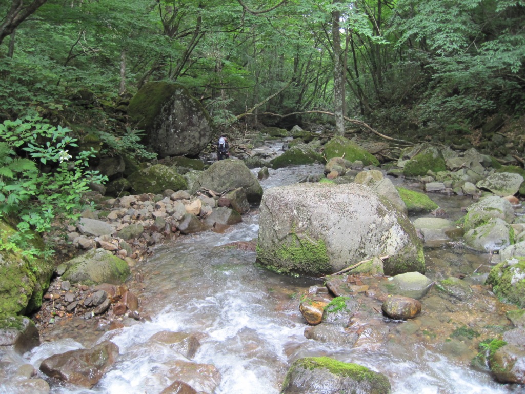今年の沢始めといっても、もうシーズンも大分過ぎた。なかなか機会が無くて行くことができなかったが、やっと0を誘って安達太良山の湯川にやってきた。今年は梅雨明けから連日猛暑が続き最近はとても尾根に行く気がしない。やはり夏は涼しい沢がいい。