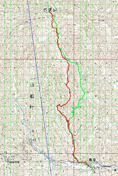 【実録時間】 藤巻(標高532m)8:00 − 尾根取り付き(標高610m)08:35 − 標高840m尾根 10:03 <大休止> 10:27 − 山頂1231.6m 11:24 <昼の憩い> 12:57 − 第2砂防ダム(標高625m)13:47~13:58 −第1砂防ダム(標高595m)14:02~14:10 − 藤巻 14:23