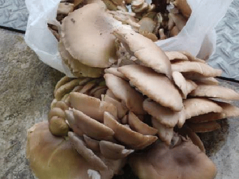 雨が降り出しそうなので、千本檜小屋の隣の避難小屋の中で大休止とする。宴たけなわのころ雨が降り出し、小屋を出るころには本降りとなっていた。登りだけでも雨に降られなかったので良しとしよう。下山途中、気になっていたキノコを探索する。ツキヨタケかと思っていたのが、なんとヒラタケの群生だった。ワーイ、ワーイと大喜びして収穫する。4人で分けても大収穫となった。キノコの香りとともに、ルンルン気分でロープウェー山頂駅に戻る。天気も悪いので乗車客はいないだろうと思っていた山頂駅は観光客でごった返していた。