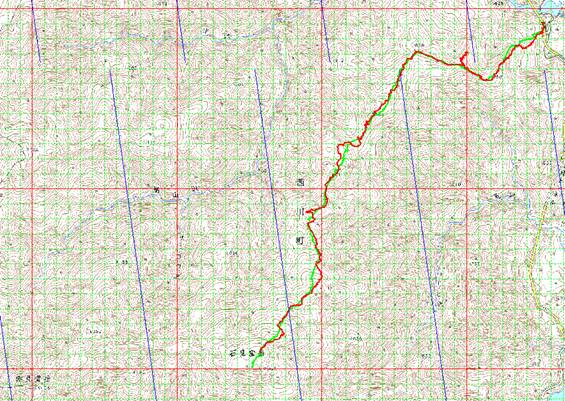 【実録時間】 「1日」 国道112号線(大越橋先標高570m)08:53 − 785m標高点09:42 − 868m標高点脇10:17 − 980m標高点ピーク下10:50 − 1011m標高点下11:20~11:46 <昼休憩> − 石見堂岳山頂13:22 「2日」 テン場08:12 − 1011m標高点08:43 − 980m標高点ピーク下09:00 − 868m標高点脇09:20 − 785m標高点09:44 − 取り付き10:01