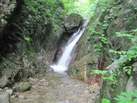 左の巻き道を進み難なく滝上に出ました。この沢は初級といわれますが、我々のような初級者には、それなりに難しいところもあり、そう簡単ということもないです。しかし、慎重に行けば問題なく、そこが面白い場所でもあります。